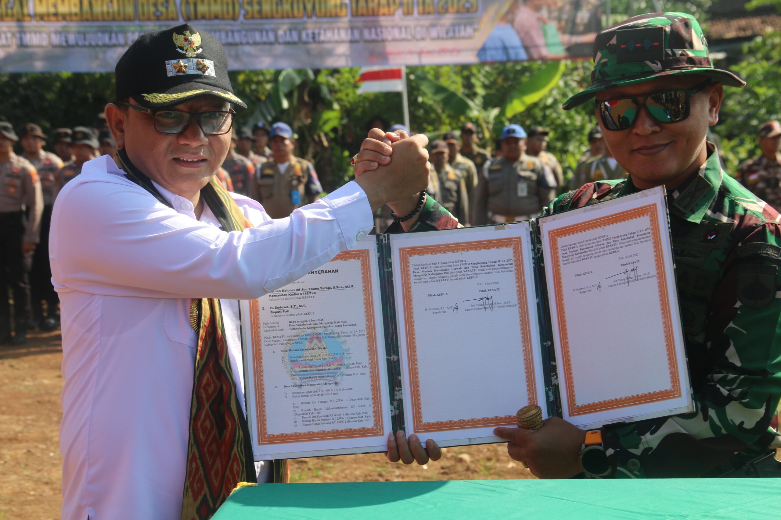 Pati, www.suarahukum-news.com | Kodim 0718/Pati menggelar upacara penutupan program TNI Manunggal Membangun Desa (TMMD) Sengkuyung Tahap II Tahun Anggaran 2025 di Desa Sukobubuk, Kecamatan Margorejo, Kabupaten Pati. Rabu (4/6/2025).