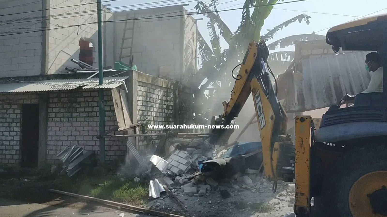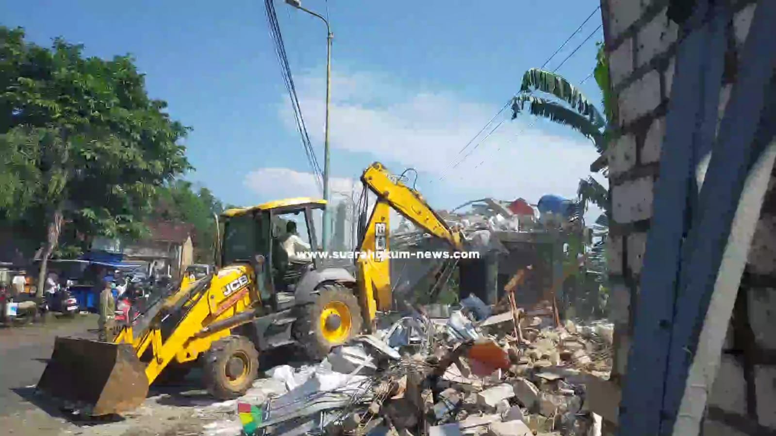 Pati, www.suarahukum-news.com | Sejumlah bangunan liar yang berada di tanah aset milik PT. KAI, Desa Margomulyo, Kecamatan Tayu, Kabupaten Pati pada Kamis (27/02) pagi telah dibongkar oleh petugas Satuan Polisi Pamong Praja (Satpol-PP) Kabupaten Pati selaku Penegak Perda lantaran dianggap tidak mengantongi izin resmi dalam pemanfaatan dan pendirian bangunan di lahan tersebut. (27/02).