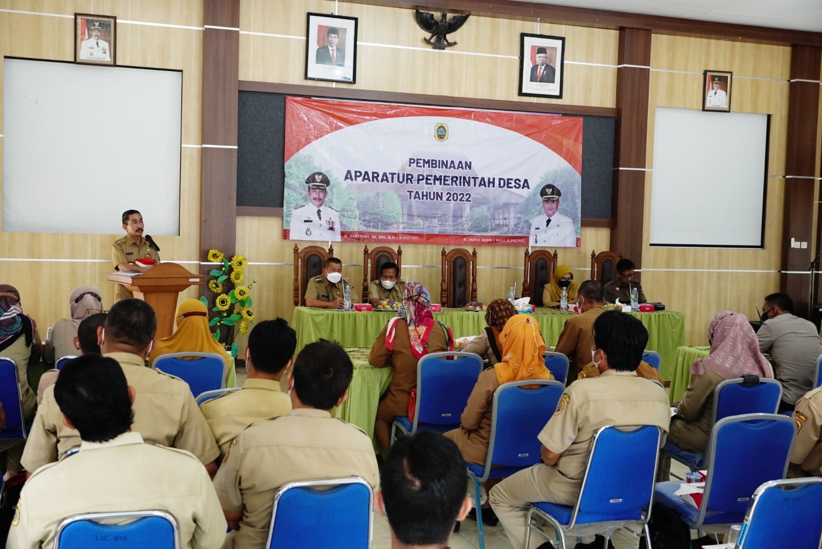 Mengawali arahannya, Bupati Pati Haryanto menyampaikan salam dari Wakil Bupati Pati Saiful Arifin kepada seluruh Kepala Desa dan Sekretaris Desa yang hadir. Wabup Safin tidak dapat turut serta dalam kegiatan tersebut lantaran masih bertugas di Jakarta.