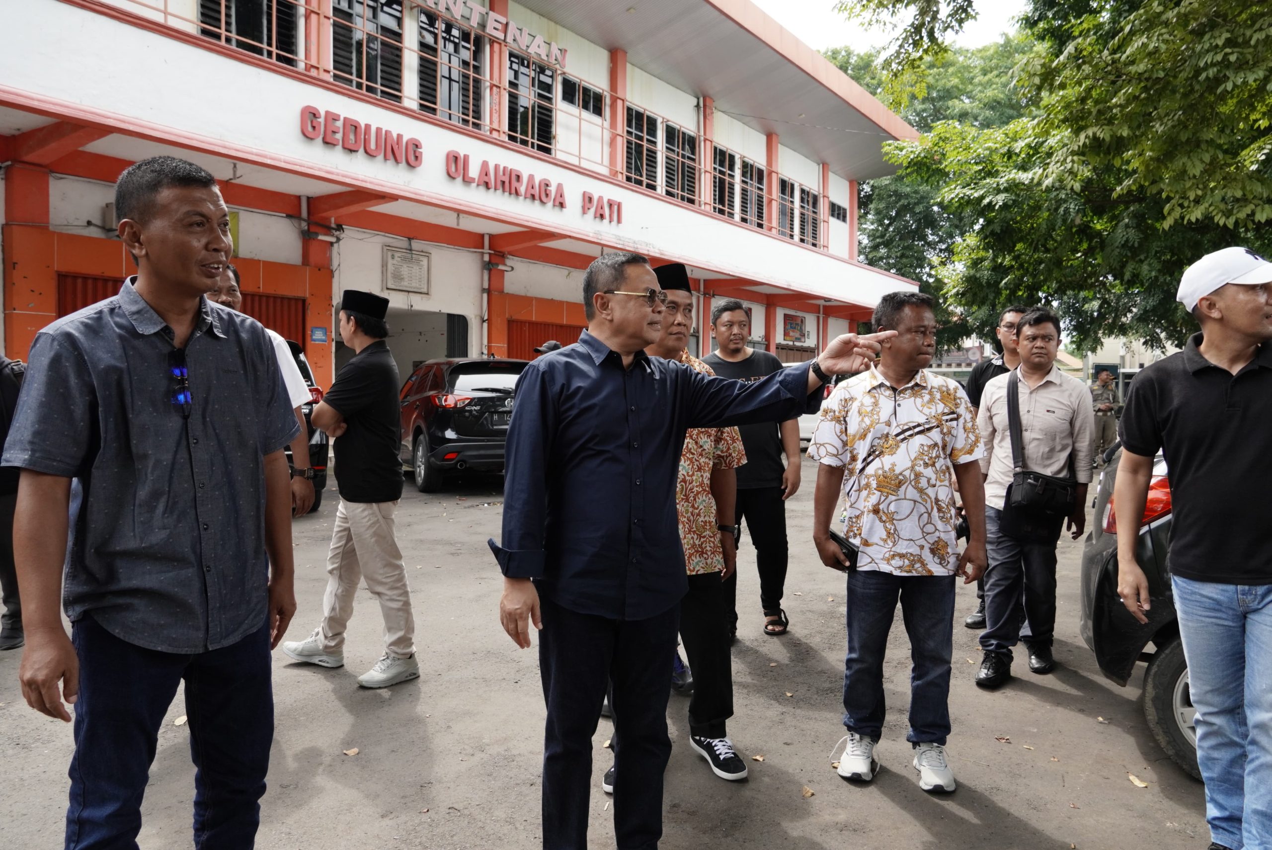 Pati, www.suarahukum-news.com | Minggu (30/3), Bupati Pati Sudewo didampingi tim renovasi dan tokoh masyarakat meninjau langsung GOR Pesantenan. (30/03)