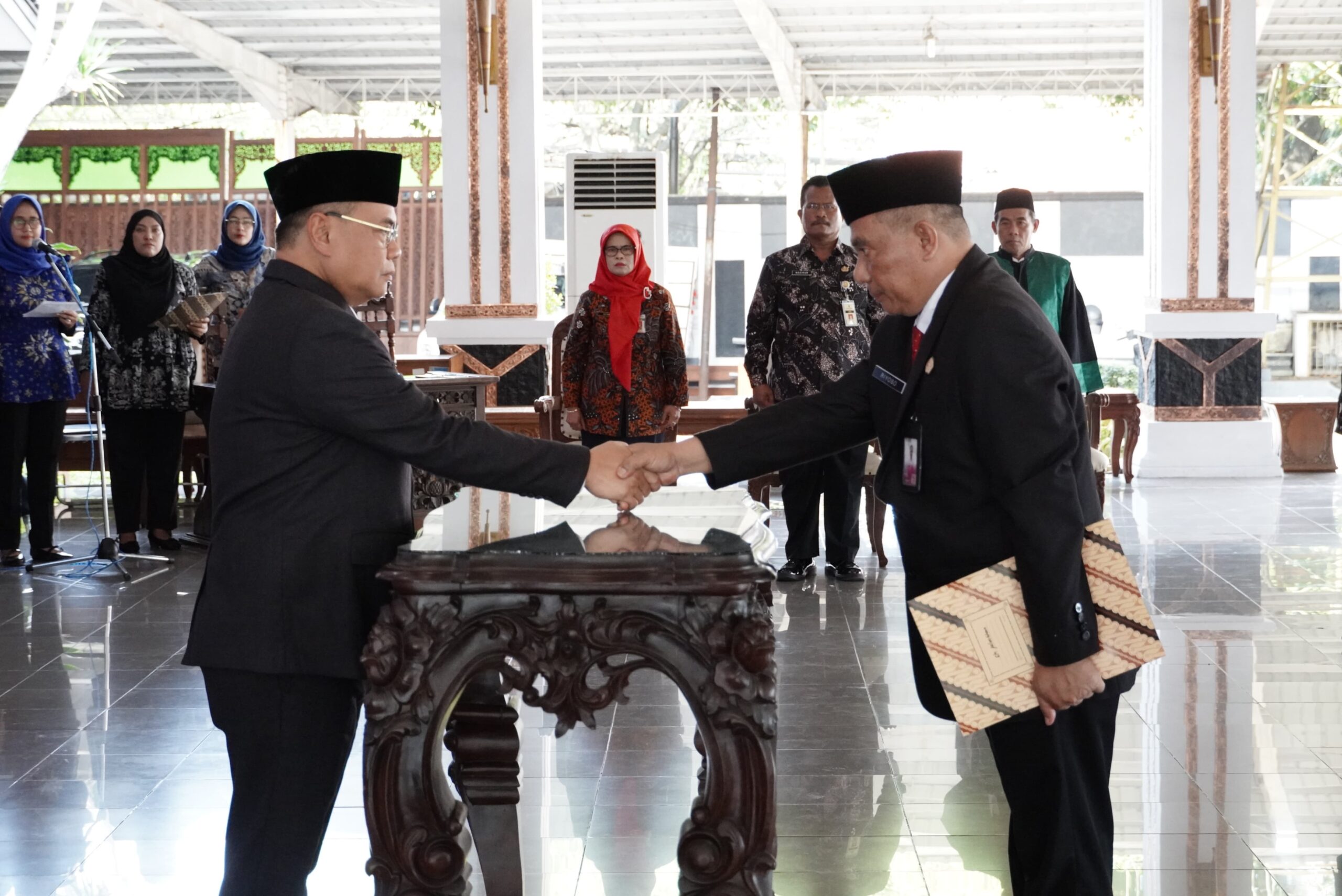 Pati, www.suarahukum-news.com | Bertempat di Pendopo Kabupaten Pati, Bupati Pati Sudewo didampingi Wakil Ketua I DPRD Hardi, Wakil Bupati Risma Ardhi Chandra, dan Sekda Jumani, melantik Riyoso sebagai Kepala DPUTR Kabupaten Pati. (25/04)
