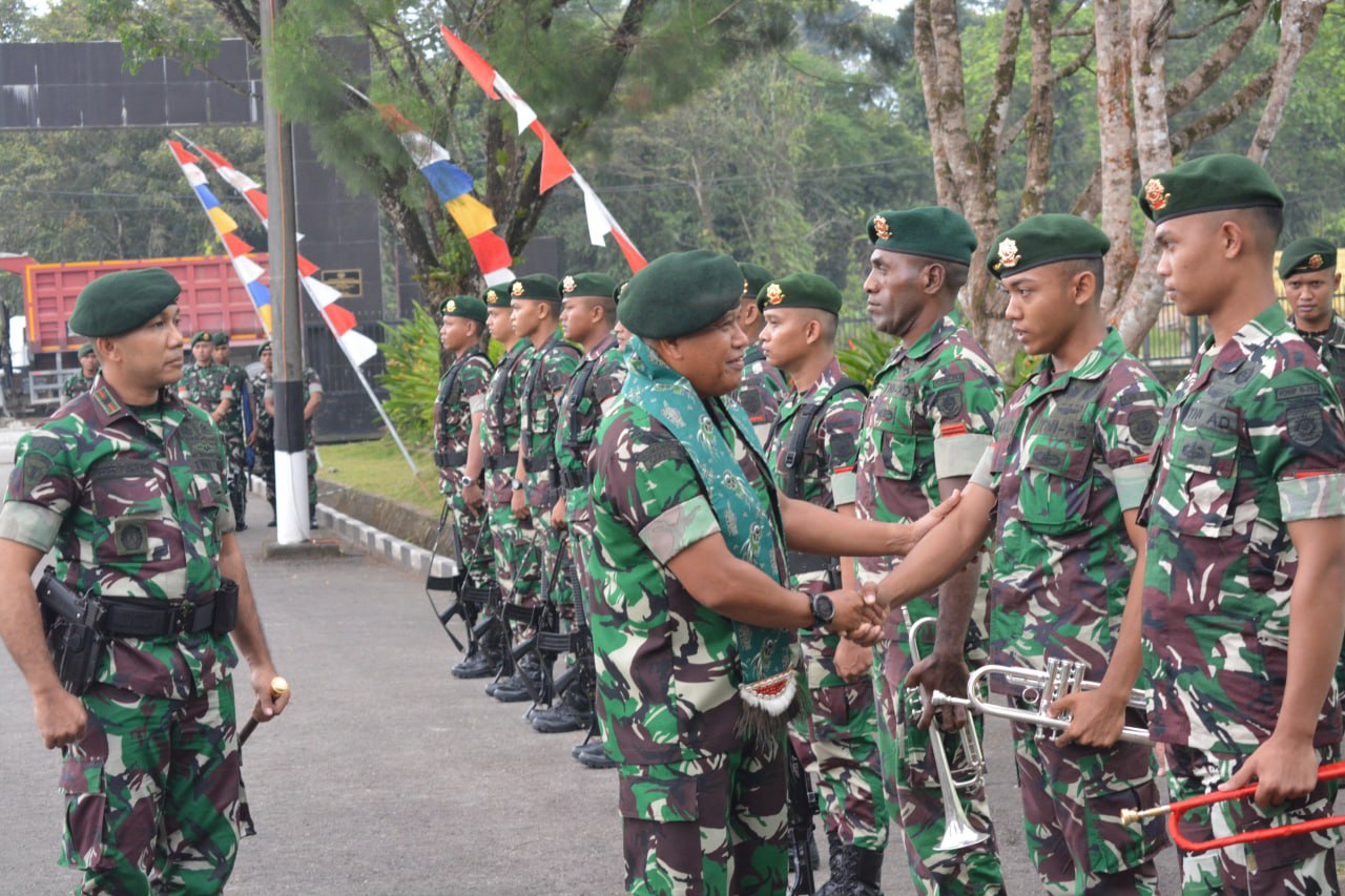 Komandan Batalyon Infanteri Raider 754/ENK Mayor Inf Cecep Cahyadi meyambut langsung Kaskostrad dan rombongan di Mayonif 754/ENK