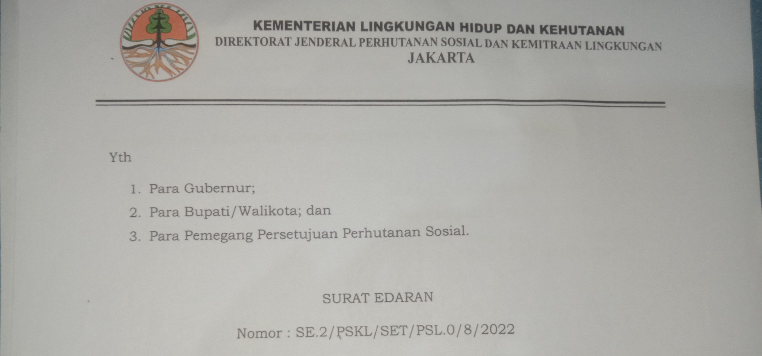 Sementara dalam Surat Edaran Kementerian Lingkungan Hidup dan Kehutanan, No: SE.2/PSKL/SET/PSL.O/8/2022 Tentang Pelaksanaan Perhutanan Sosial Yang Bersih Dan Berintegritas, yang diterbitkan pada tanggal 5 Agustus 2022, telah menyebutkan: