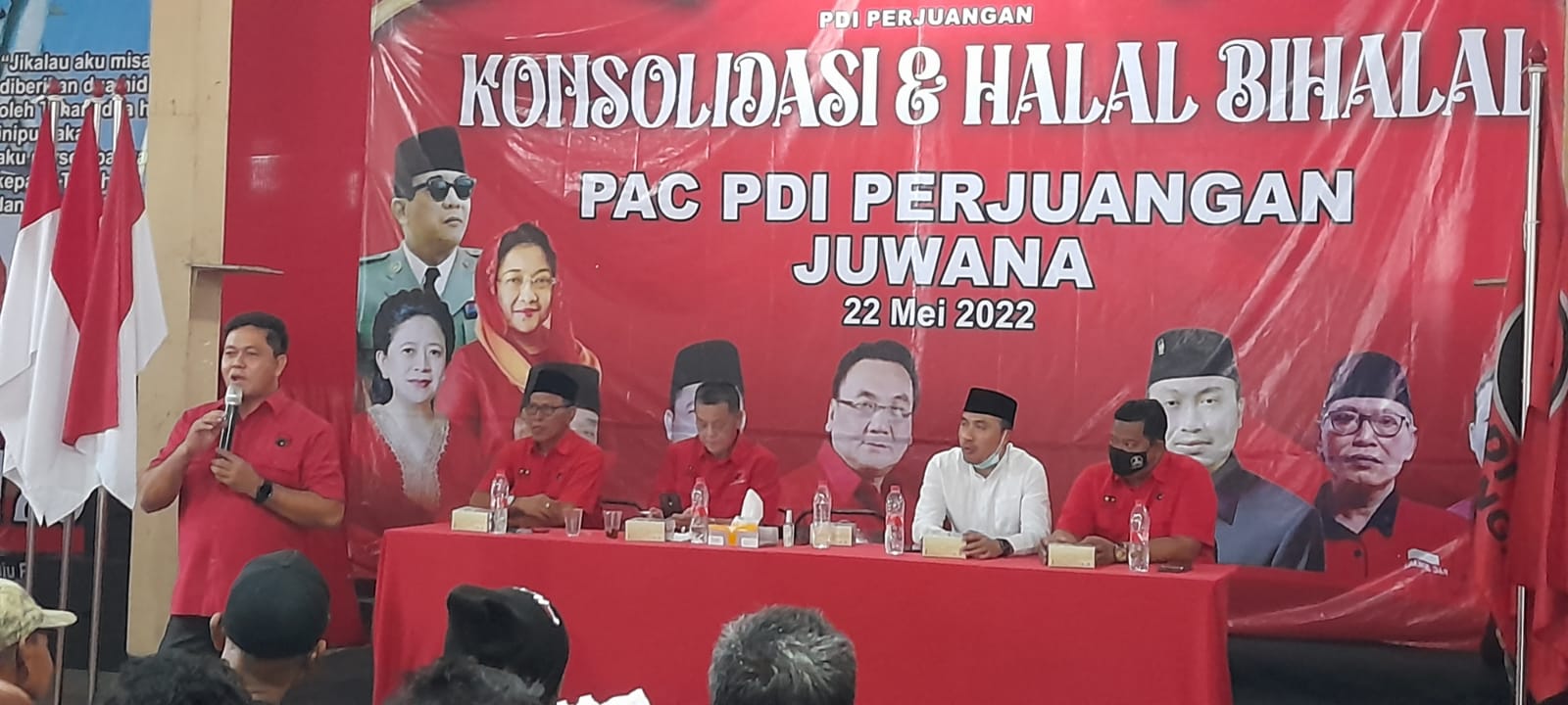Dalam sambutannya, Ketua PAC Juwana Sunaryo telah menyampaikan bahwa, hari ini merupakan hari bersejarah bagi kita. Karena, dapat berjumpa di acara Konsolidasi dan Halalbihallal guna menatap tahun politik pada 2024.