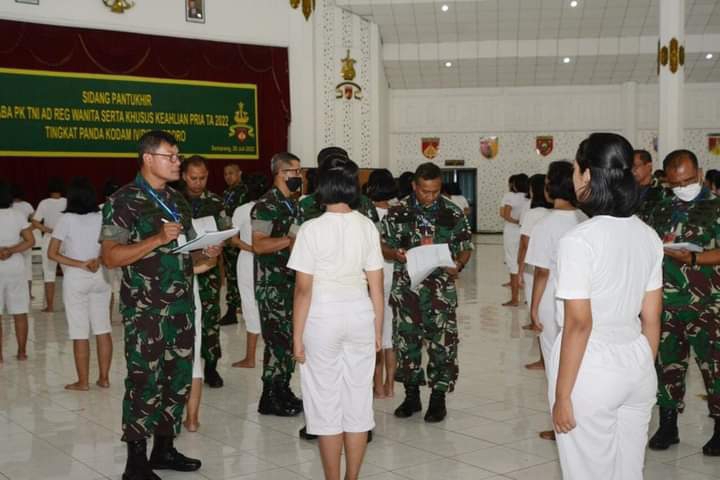 Semarang, www.suarahukum-news.com | Proses penerimaan Calon Bintara (Caba) PK TNI AD reguler wanita dan keahlian pria TA. 2022 wilayah Kodam IV/Diponegoro memasuki tahapan sidang Penentuan Akhir (Pantukhir) yang dipimpin oleh Pangdam IV/Diponegoro Mayjen TNI Widi Prasetijono, Jumat (29/07) bertempat di Balai Diponegoro. (30/07).