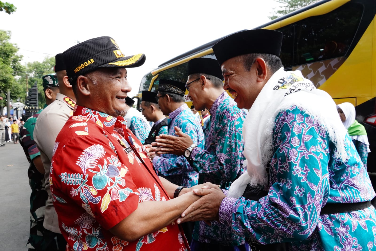 Penjabat Bupati Pati Henggar Budi Anggoro, Jumat (16/6), memberangkatkan jemaah calon haji kloter 78 dan 79 asal Kabupaten Pati. (16/06)
