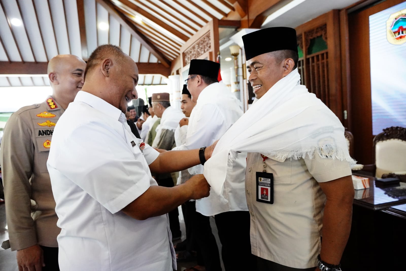 “Maka dari itu, saya berpesan agar rasa syukur tersebut diwujudkan dengan memperbanyak ibadah dan semakin mendekatkan diri kepada Allah SWT agar nantinya diberikan kelancaran dan keselamatan dari mulai pemberangkatan, pelaksanaan ibadah haji di tanah suci, hingga kembali ke tanah air menjadi haji yang mabrur,” tuturnya.