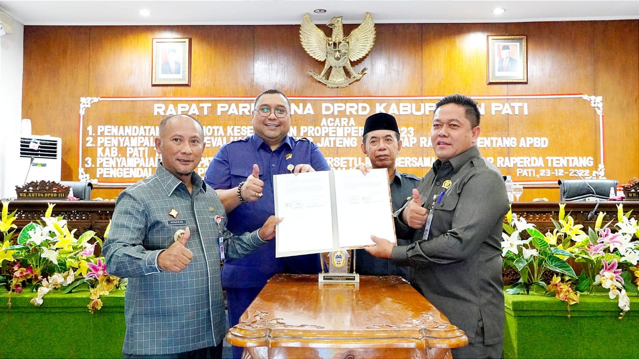 Pati, www.suarahukum-news.com | Rapat Paripurna DPRD Kabupaten Pati yang berlangsung hari ini, Jumat (23/12) setidaknya telah membahas tiga agenda penting, diantaranya, Penandatanganan Nota Kesepakatan Propemperda 2023 kemudian Penyampaian Hasil Evaluasi Gubernur Jateng terhadap Raperda tentang APBD Kabupaten Pati Tahun 2023 dan yang ketiga terkait penyampaian Pendapat Akhir Fraksi dan Persetujuan Bersama Terhadap Raperda tentang Pengendalian dan Pengawasan Minuman Beralkohol (Minol). (24/12)
