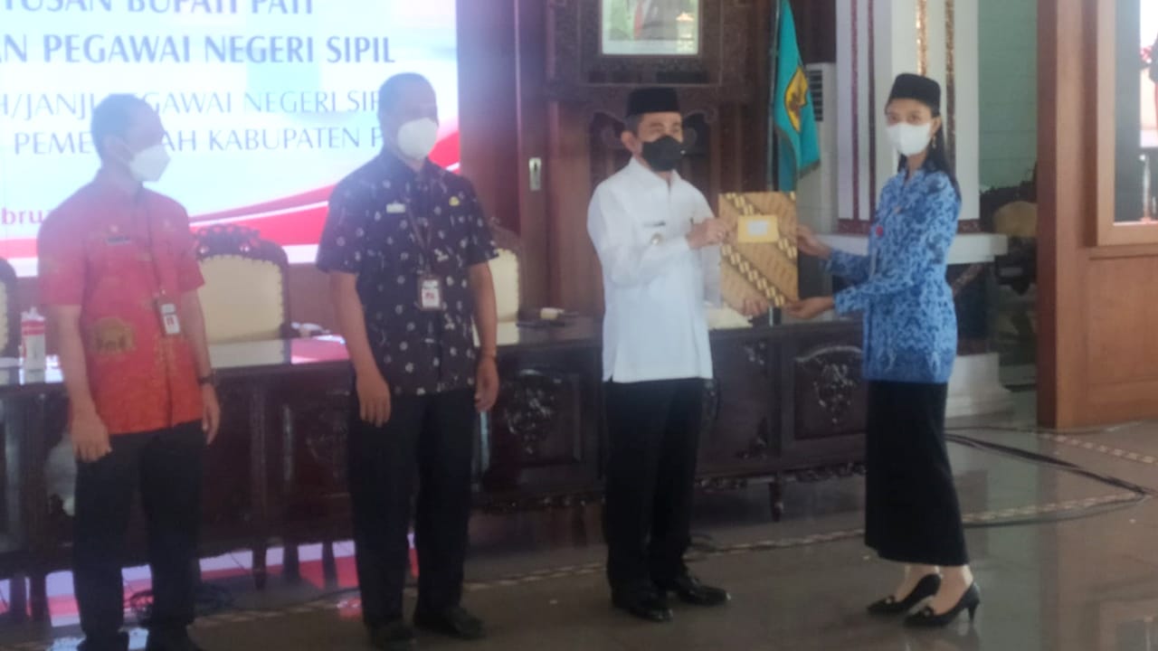 Diketahui sebelumnya, tahun ini Pemerintah Kabupaten Pati melantik dan menyerahkan SK Pengangkatan tertanggal (1 Maret 2022) kepada total 495 orang menjadi Aparatur Sipil Negara (ASN) di lingkungan Pemerintah Kabupaten Pati, Jawa Tengah.