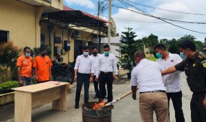 “Atas perbuatannya, para tersangka tersebut dikenai Pasal 114 ayat ( 2 ) UU RI No. 35 Tahun 2009, tentang Narkotika. Dengan ancaman pidana penjara paling singkat 6 ( enam ) tahun dan paling lama 20 ( dua puluh ) tahun,” tandasnya.