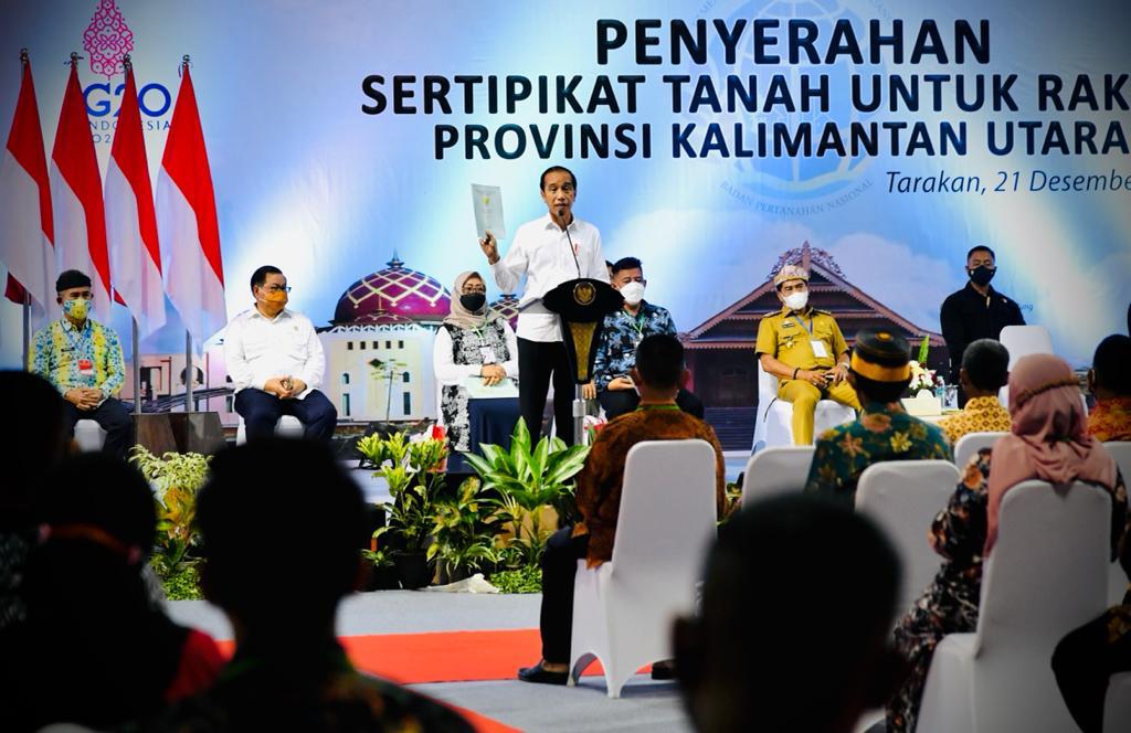 Kalimantan Utara, www.suarahukum-news.com-Ada yang menarik saat Presiden Joko Widodo pada Selasa (21/12) saat menyerahkan sertifikat hak atas tanah untuk rakyat di Gedung Tenis Tertutup Telaga Keramat, Kota Tarakan, Provinsi Kalimantan Utara.(22/12).