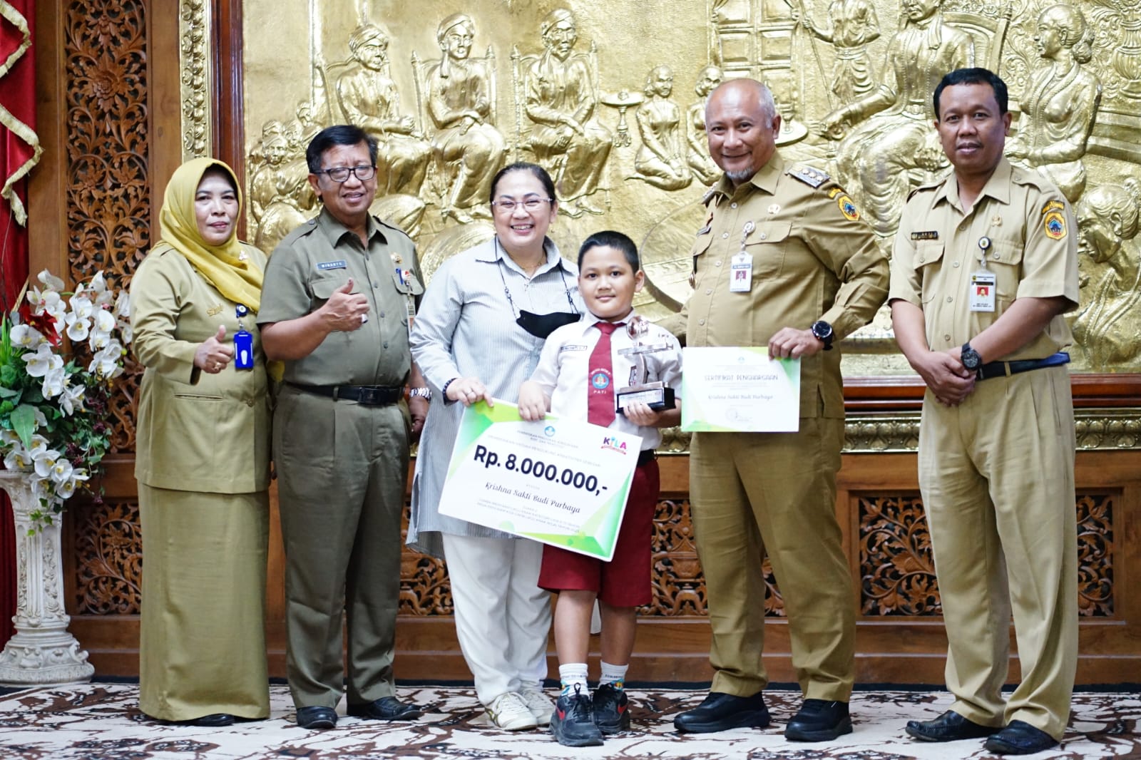 Pati, www.suarahukum-news.com | Pj Bupati Pati Henggar Budi Anggoro mengapresiasi prestasi Krishna (8) yang telah berhasil melambungkan nama Pati di kancah nasional. (29/08)